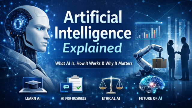 A complete beginner friendly guide to AI that explains what artificial intelligence is, how it works, real world…